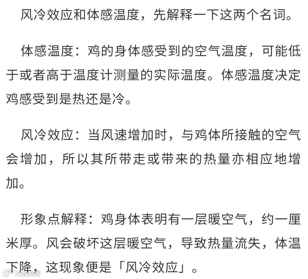 就是多大的风速,对于多大的风冷效应以及鸡的体感