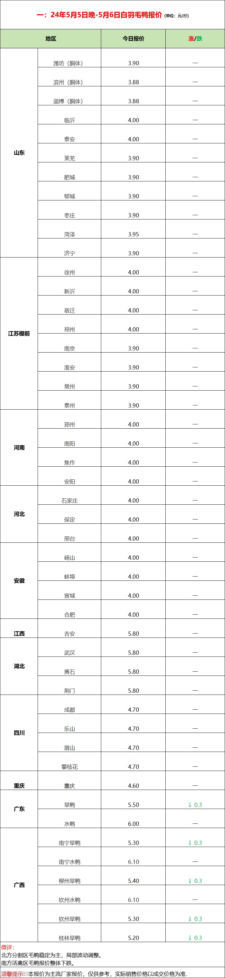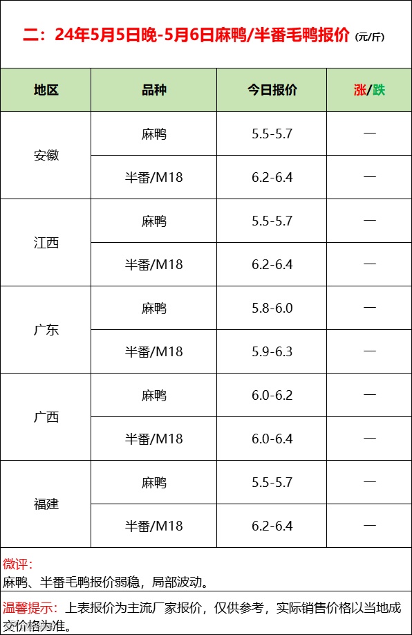 2024年5月6日水禽行情简报 益牧堂水禽信息