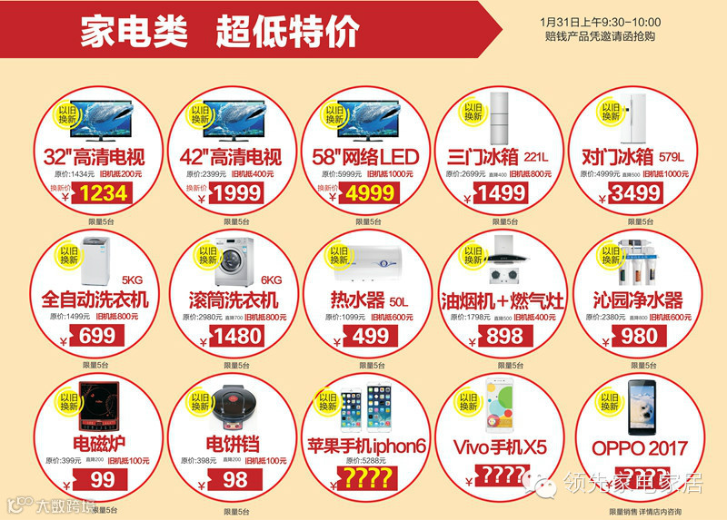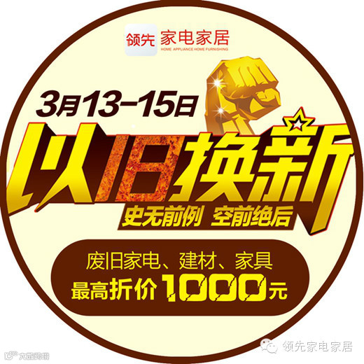 3月13日前领先物流车免费上门到顾客家换购旧家电,最高再送108元电水壶;