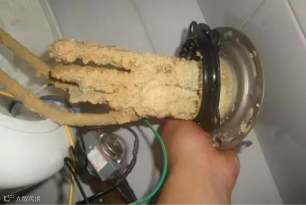 经过断电放水拆卸后,资深家电清洗从业者师傅从一台使用了六年且从未清洗过的电热水器中取出热水器的加热棒。