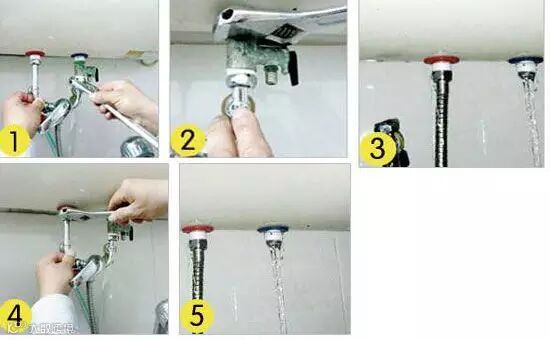 按上图1、2、3把内胆里的水排放完,随着放出的水,内胆里大部分水垢也随之排出。将冷水管道的金属软管接到热水器的热水出口上(即左边红色),开启冷水角阀,让冷水由热水管道冲到内胆里,这从泄压阀出水口里继续流出混有水垢的水。反复多次重复直至从冷水管出水口里流出的水已经干净,说明内胆基本清洗干净了。