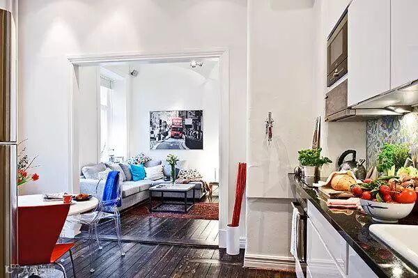 为了最大化的节省空间,开放式的厨房是不错的选择。