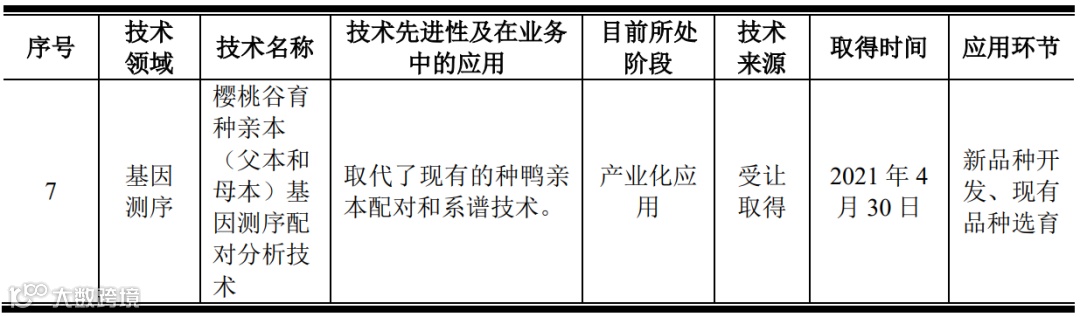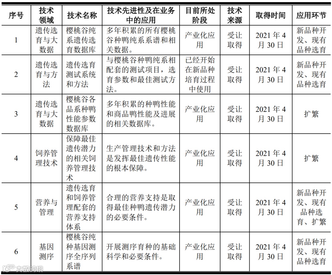 公司拥有的樱桃谷鸭产品育种技术情况如下:
