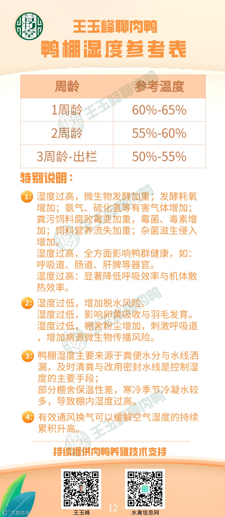 鸭棚湿度控制参考表,及注意事项。 益牧堂水禽信息