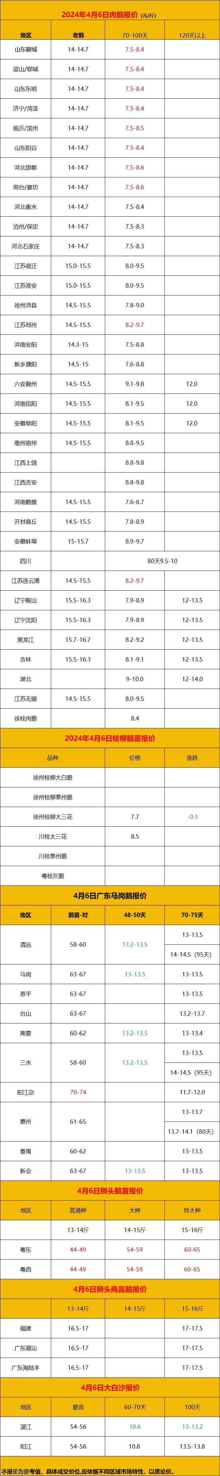滑县内黄:大三花-通蛋5.6 大泰州-通蛋4.6