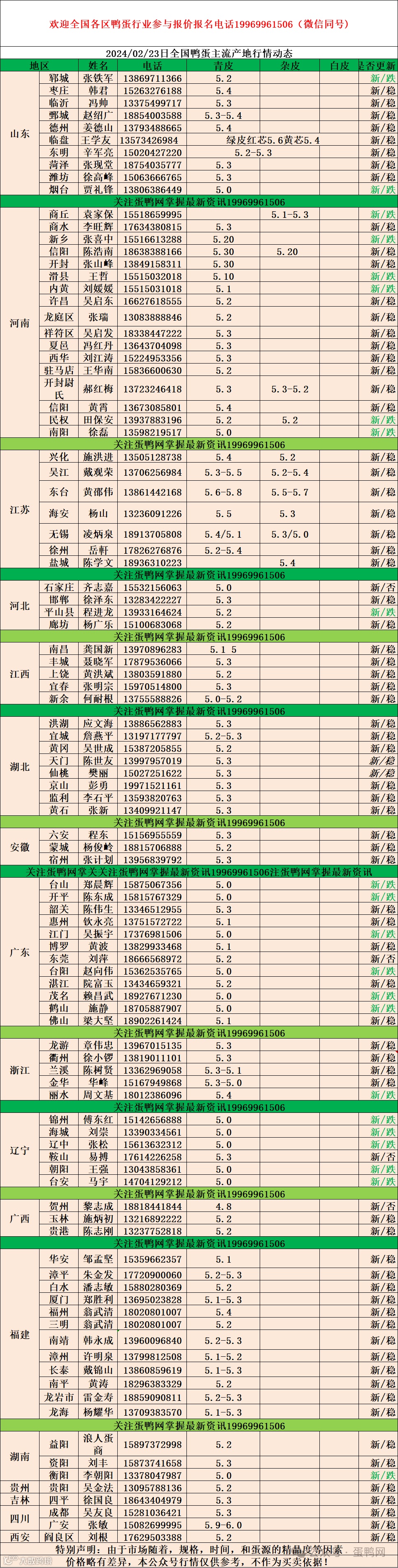:活禽市场17元/斤左右。屠宰厂收购价14元/斤左右,淘汰鸭价格受毛色,体重,品种等影响的变化较快。