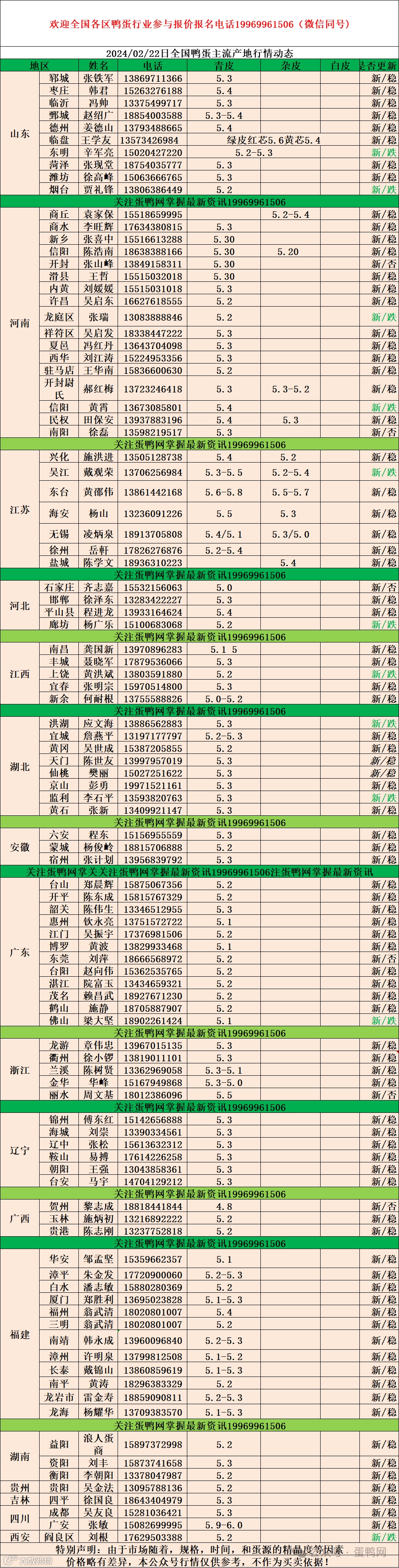 2024年2月22日商品鸭蛋报价