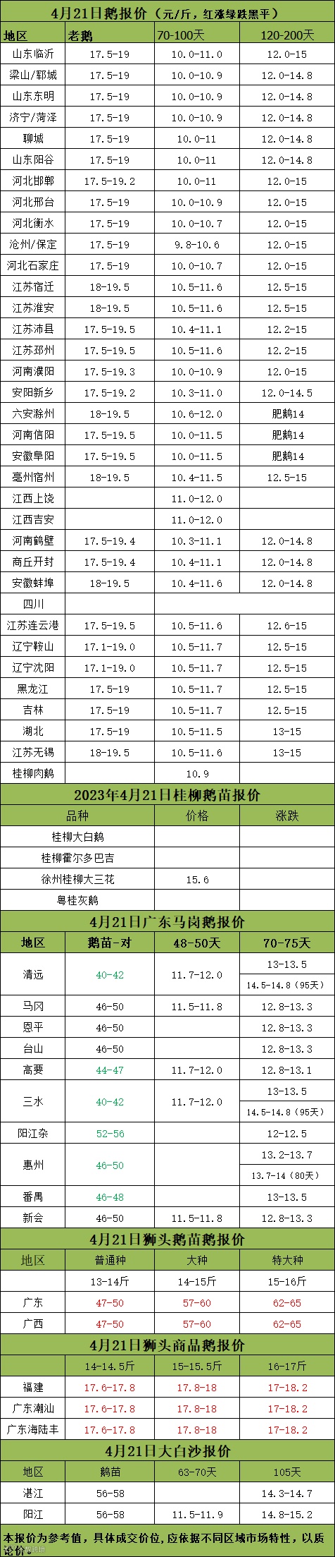 2023年4月21日各品种鹅苗价格