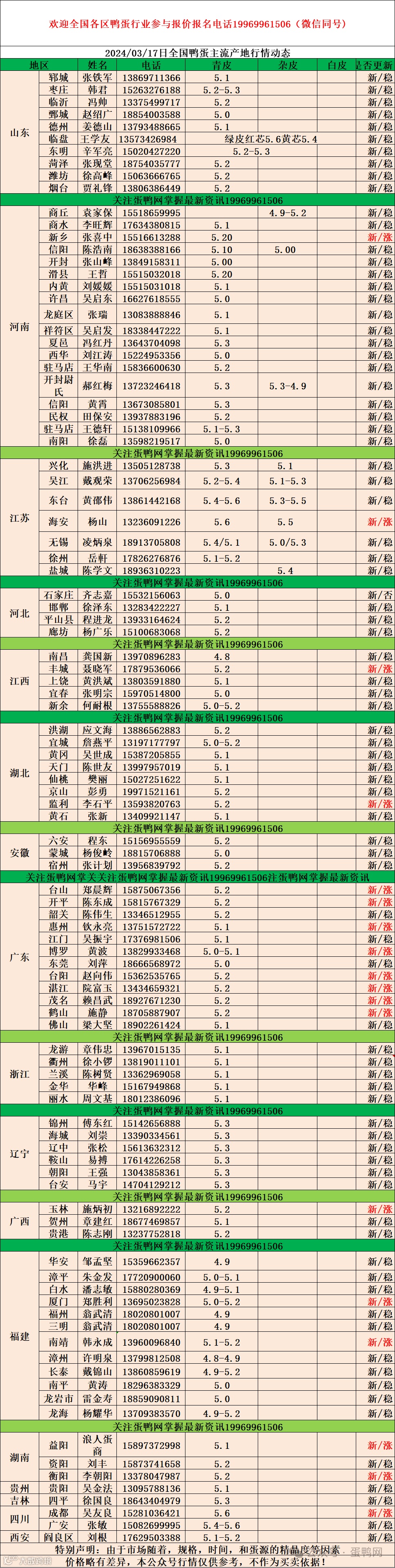 淘汰鸭:活禽市场16元/斤左右。屠宰厂收购价13.5元/斤左右,淘汰鸭价格受毛色,体重,品种等影响的变化较快。