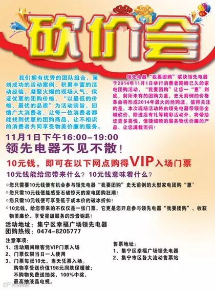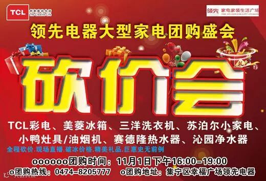 你砍价,我放价!关注11月1日下午 领先大型团购砍价会 领先家电家居