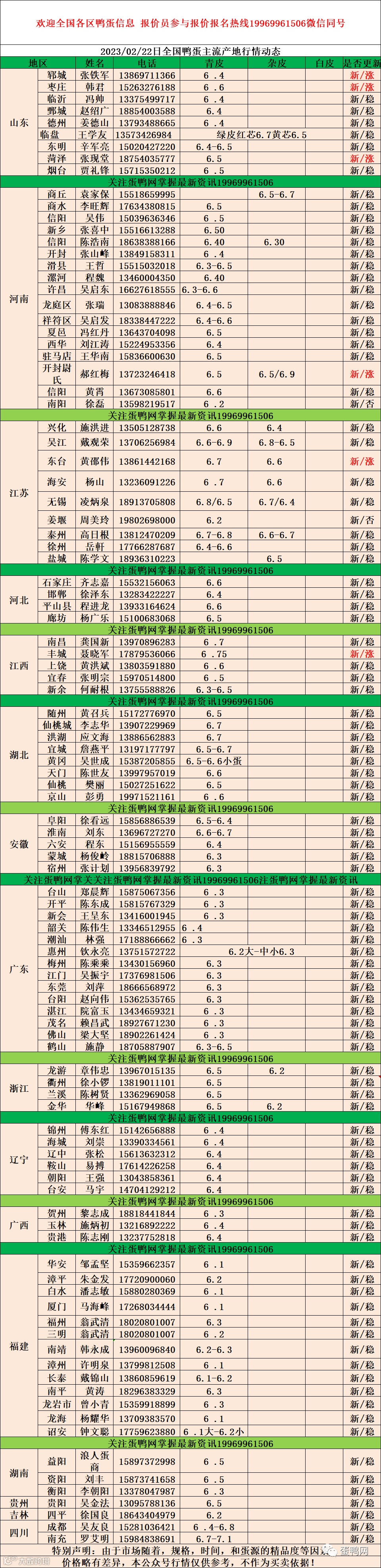 2023年02月22日:初产至10个头5.9元,10个头至9个头6.0元,9个头至8个头6.1元,8个头至7.5个头6.2,7.5个头至大蛋6.4元。