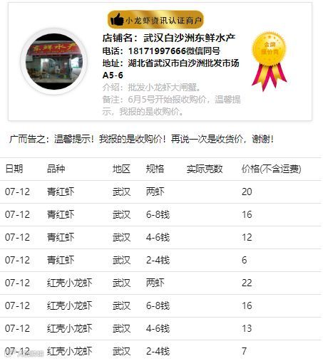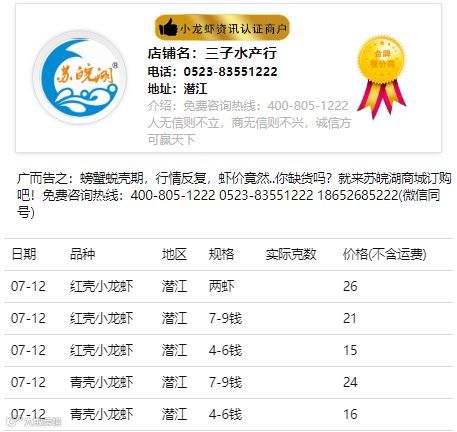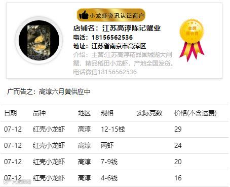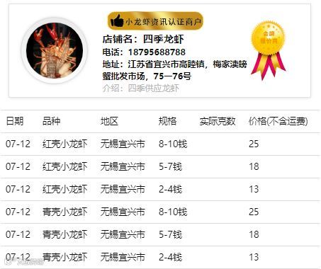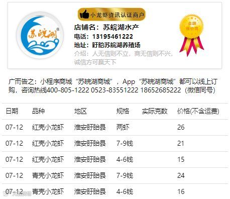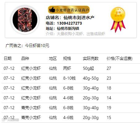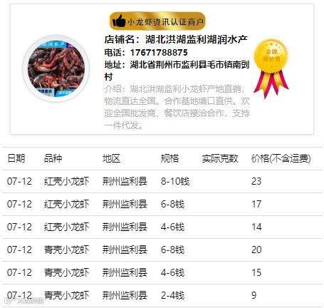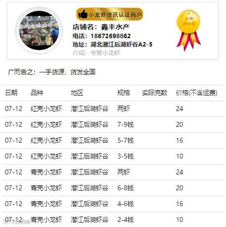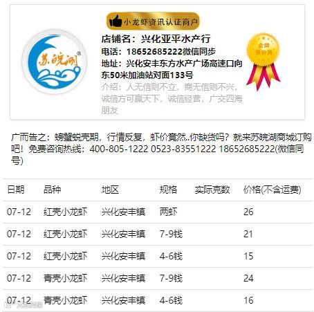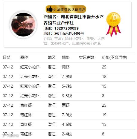 以稳为主,略有小跌,7月12日全国各地小龙虾报价
