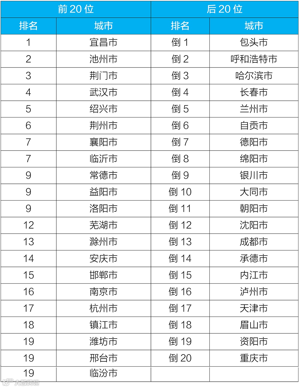 1-6月,168个重点城市中,包头、呼和浩特、哈尔滨市等城市空气质量改善幅度相对较差(从倒数第1名至倒数第20名);宜昌、池州、荆门市等城市空气质量改善幅度相对较好(从第1名至并列第19名,见附表9)。