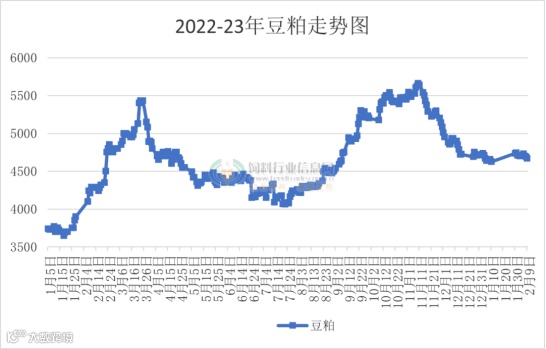 去年饲料价格大涨,主要原因是豆粕缺货带来的蝴蝶效应。从去年11月到现在,豆粕在经历3个月窄幅震荡后,根据饲料行业信息网数据统计,2月9日,全国油厂及贸易商43%蛋白豆粕价格继续偏弱整理,全国豆粕均价为4670元/吨,下跌20元/吨,而张家港、