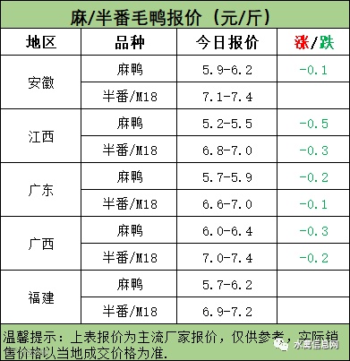 麻鸭苗报价平稳;半番鸭苗报价平稳。