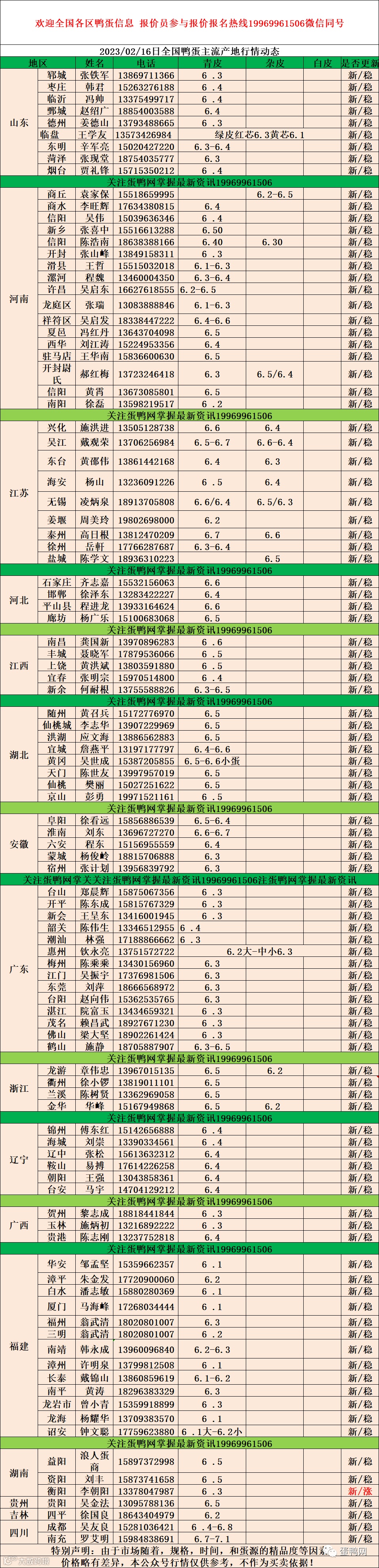 2023年2月16日鸭蛋报价