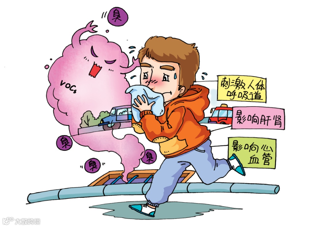 下水道和污水井通常会散发恶臭,其气体中除含有主要温室气体甲烷外,还含有苯系物、2-丁酮、乙酸乙酯、乙酸丁酯和甲硫醚等,可刺激人的呼吸道,影响肝、肾和心血管的生理功能。