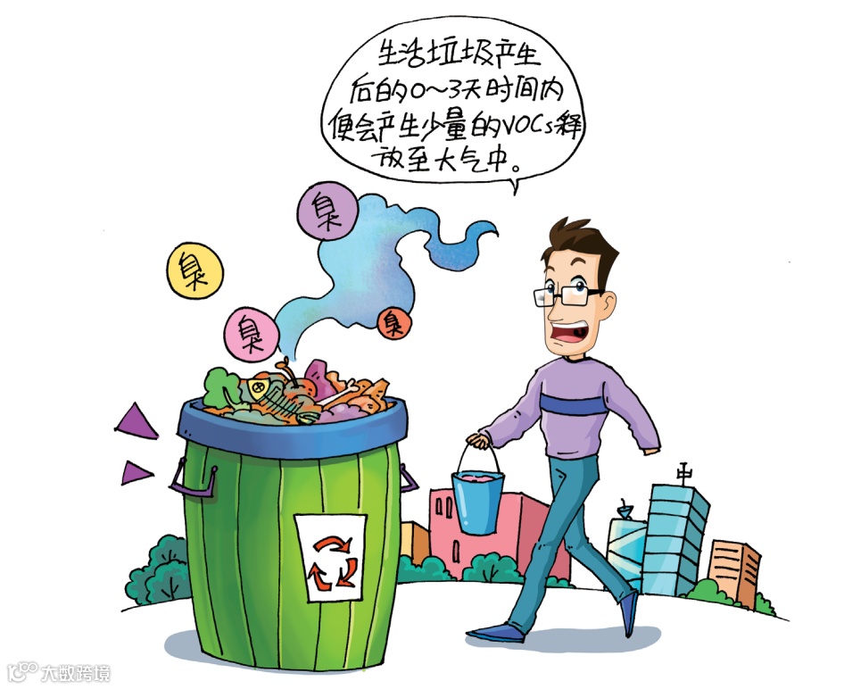 由于我国生活垃圾的含水率和易生物降解有机组分的含量较高,生活垃圾产生后的 0~3天时间内,垃圾中的有机物便会在微生物的降解作用下产生少量的VOCs释放至大气中,主要包括酮类(如丙酮、丁酮)和硫醚类(如二甲基二硫醚、二甲基硫醚)物质。另外,少量来自生活垃圾自身含有或吸附-溶解的VOCs会挥发至大气中,主要是芳香烃类物质,如苯、甲苯、二甲苯、苯乙烯等。硫醚类物质具有令人不愉快的恶臭气味。