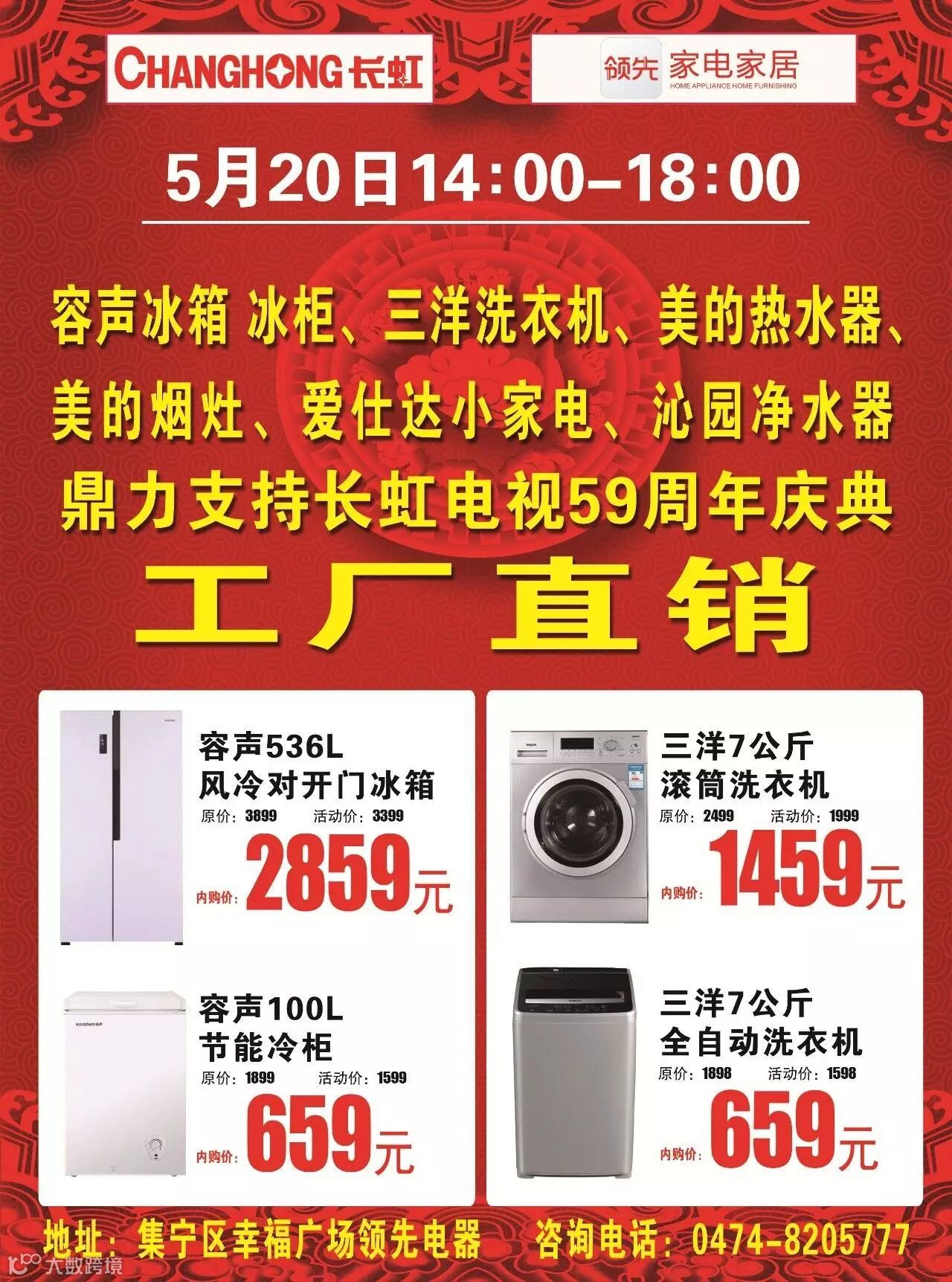 容声冰箱、冰柜,三洋洗衣机,美的热水器、烟灶,爱仕达小家电,沁园净水器,鼎力支持!活动品类可省400-2000元!