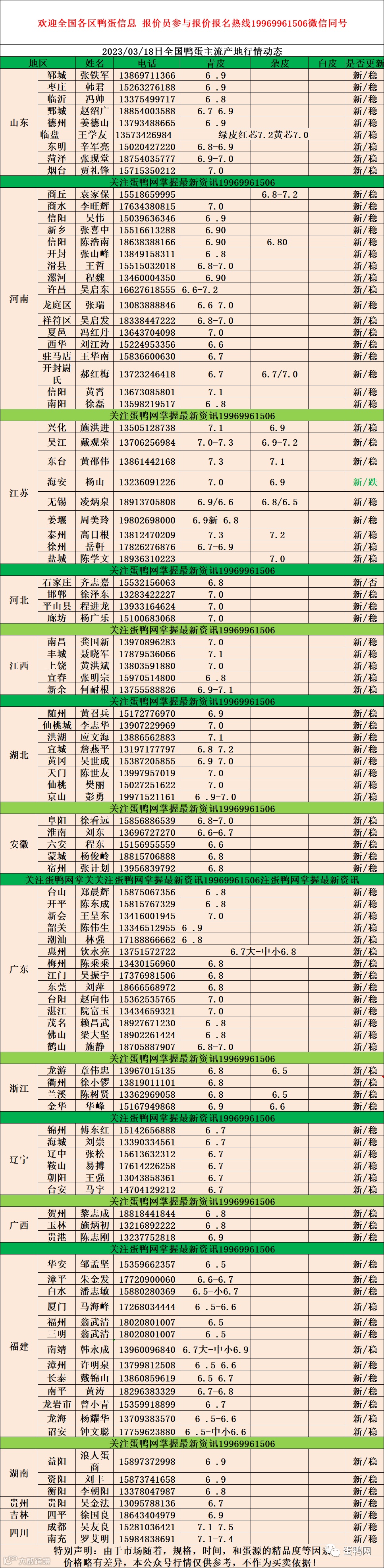 2023年3月18日鸭蛋报价