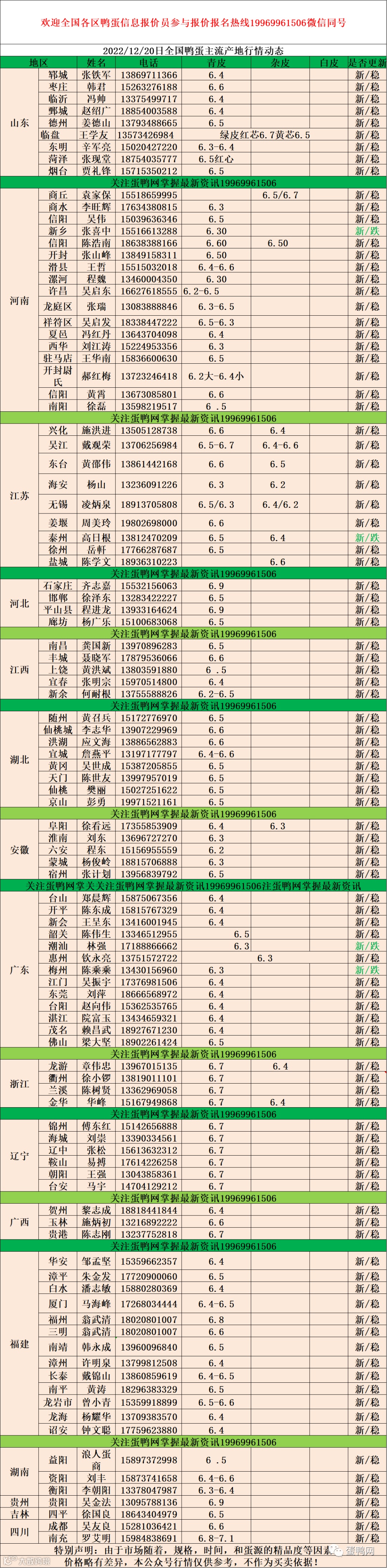 2022年12月20日鸭蛋报价