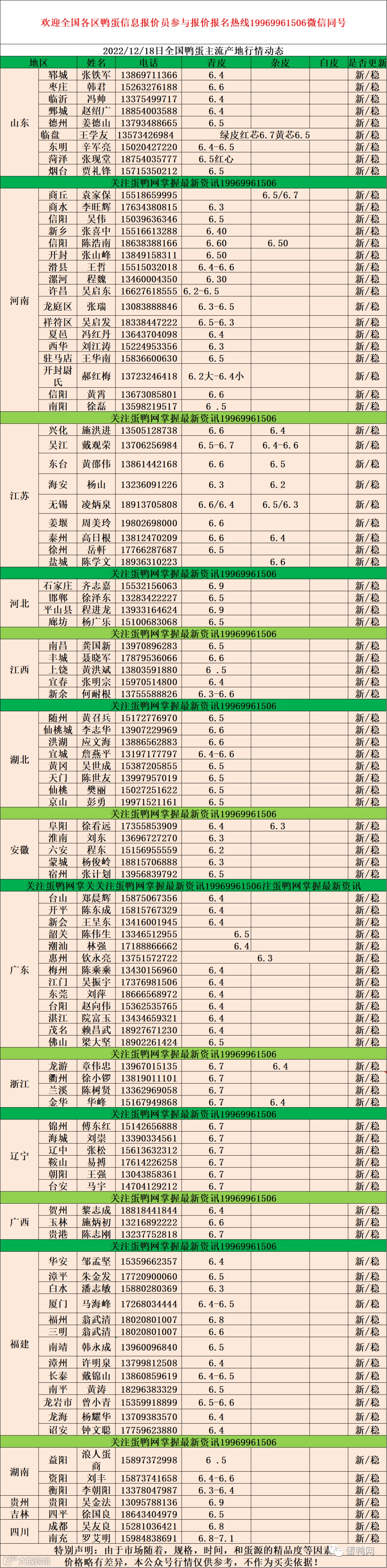 2022年12月18日鸭蛋报价