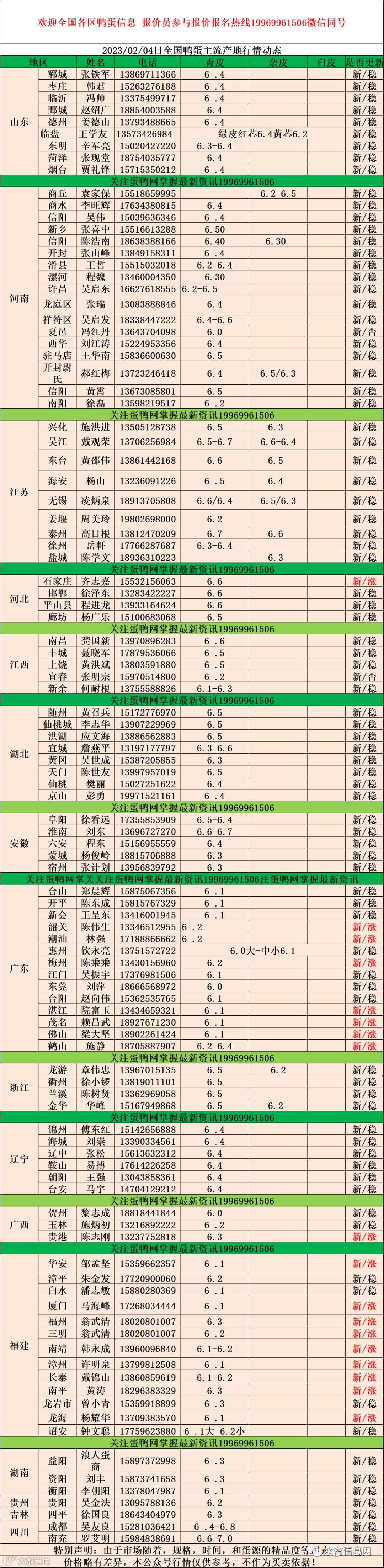 2023年02月04日:初产至10个头5.9元,10个头至9个头6.0元,9个头至8个头6.1元,8个头至7.5个头6.2,7.5个头至大蛋6.4元。