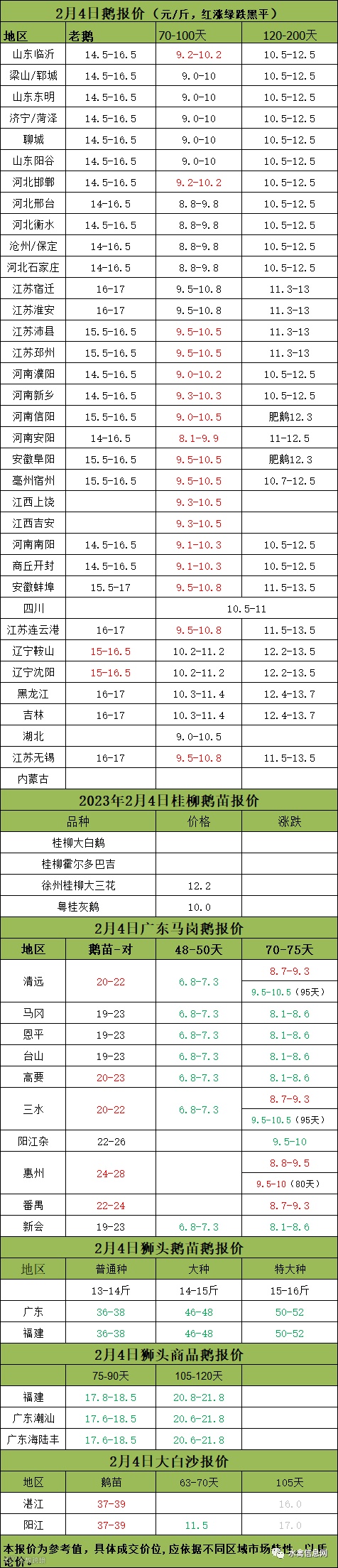 2023年2月04日鹅种蛋价格(元/枚)部分停报