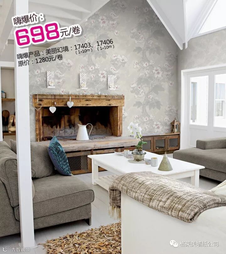 嗨爆产品:美丽幻境:17403(1*10m)、17406(1*10m) 原价:1280元/卷 嗨爆价:698元/卷