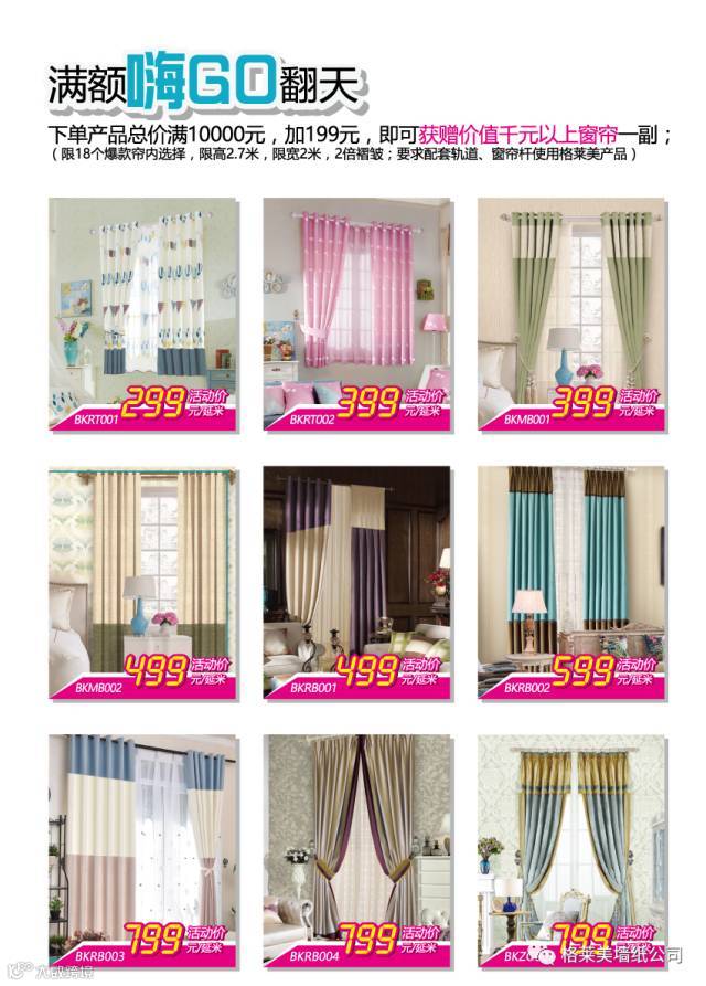 下单产品总价满10000元,加199元,即可获赠价值千元窗帘一副!