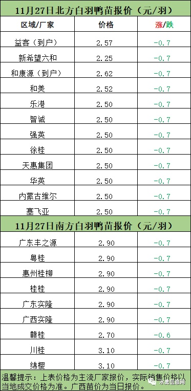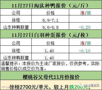 一、11月26日晚-11月27日白羽肉鸭报价;
