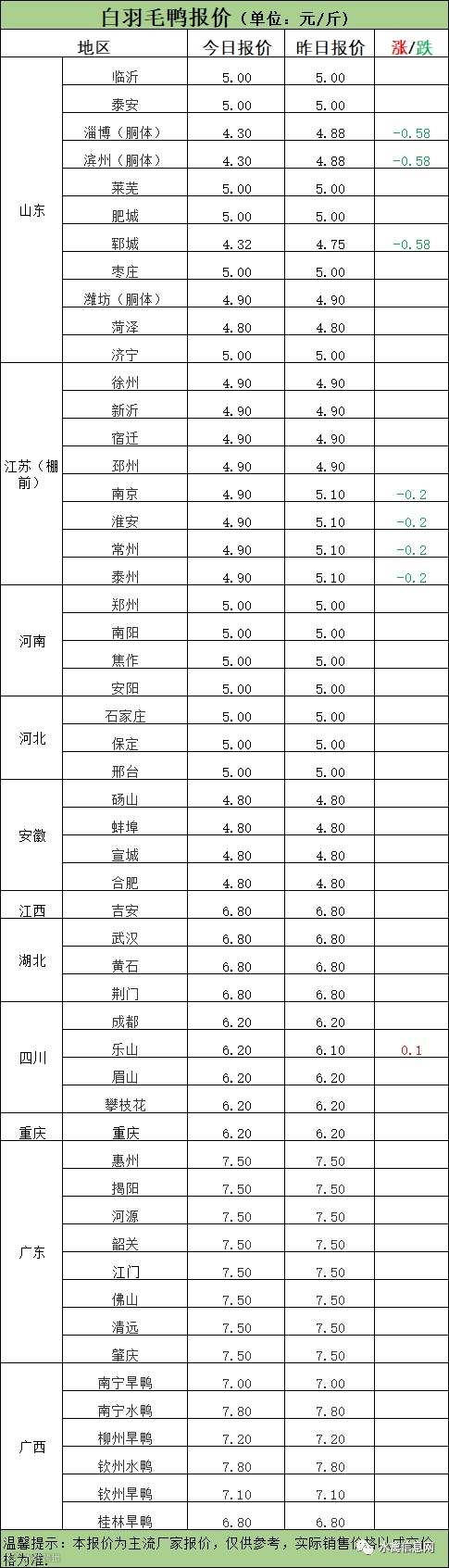 北方市场毛鸭报价大跌下滑,疫情影响成交较差,下滑明显;合同区域冷藏回收合同为主,当前冷藏普遍亏损态势,市场鸭收购情绪一般;