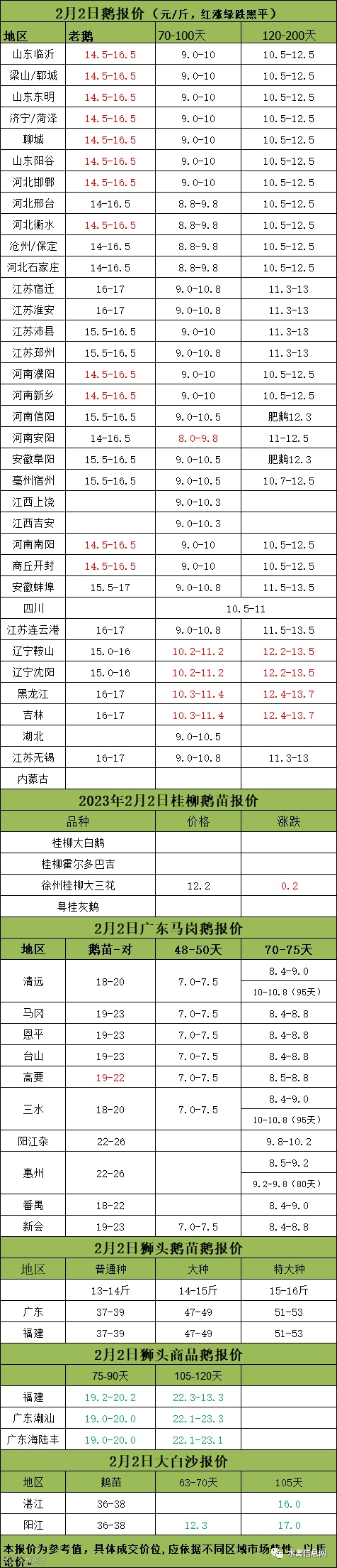2023年2月02日各品种鹅苗价格