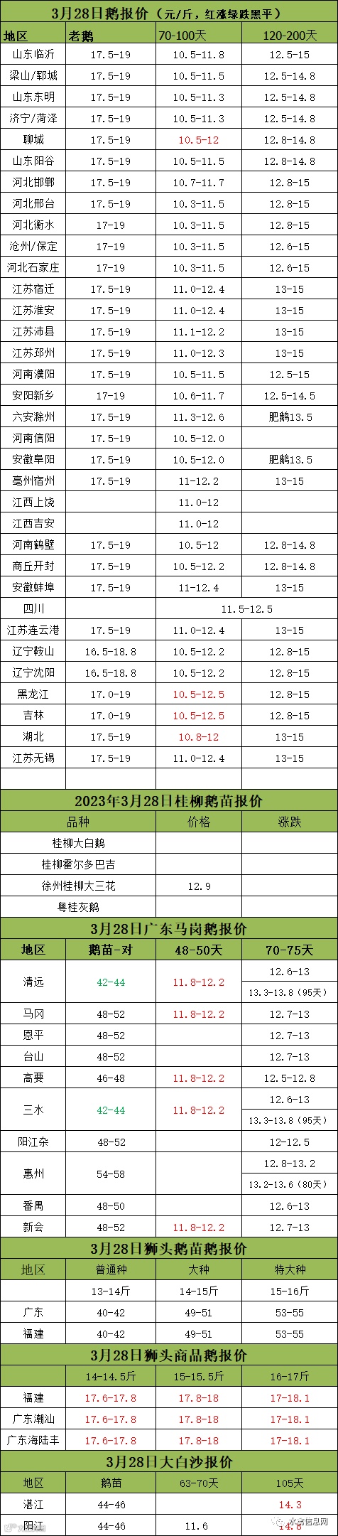 2023年3月28日各品种鹅苗价格