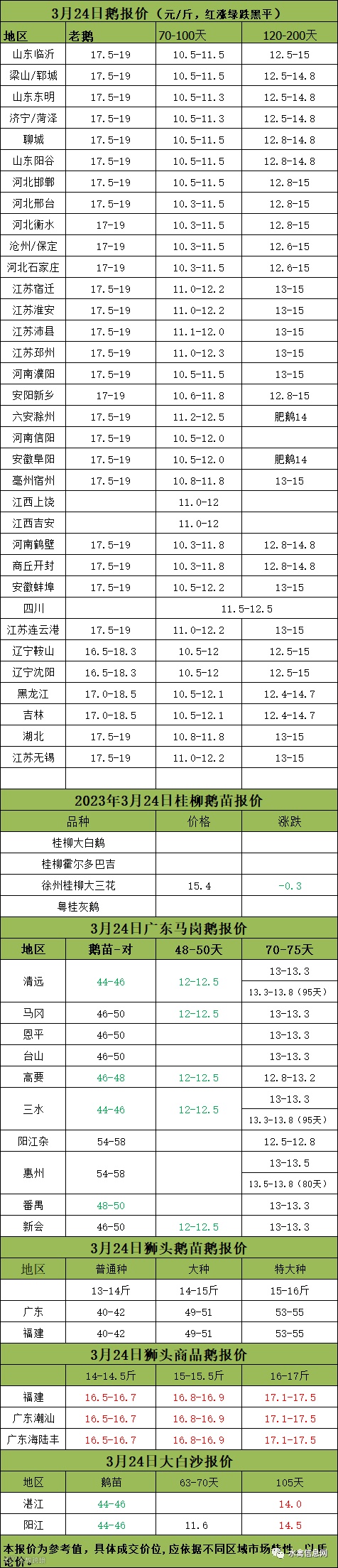 2023年3月24日鹅种蛋价格(元/枚)部分停报