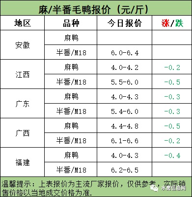 麻鸭苗报价弱稳;半番鸭苗报价平稳。