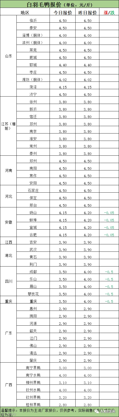 北方市场毛鸭报价稳定为主;冷藏努力恢复开工中,市场缓和迹象。南方活禽区域行情仍弱,养殖环节严重亏损。