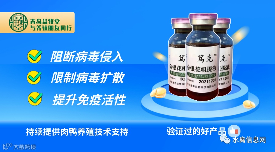 3:节点防控,在免疫空白期或疾病高发期,如18-19天,28-29天前后,泰芪强每瓶管1000只鸭,连续饮水2天。提升非特异性免疫力,防控多种病毒侵袭。