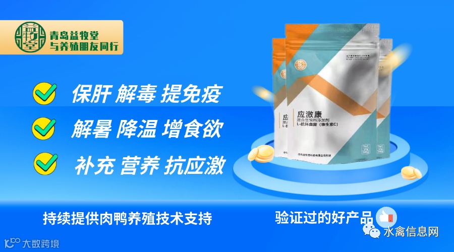 广泛应用于肉鸭养殖抗应激、防瘫痪、提高抗病力、促进疾病恢复、催肥促生长等方面。