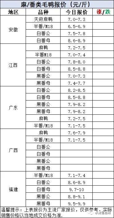 麻鸭苗报价继续下滑;半番鸭苗随行下滑。