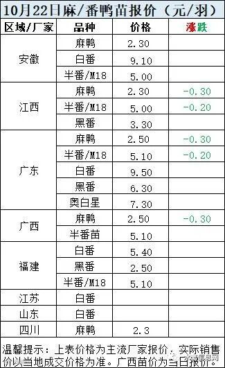 二、2022年10月22日麻鸭苗、半番鸭苗报价;