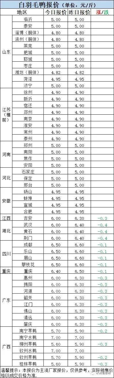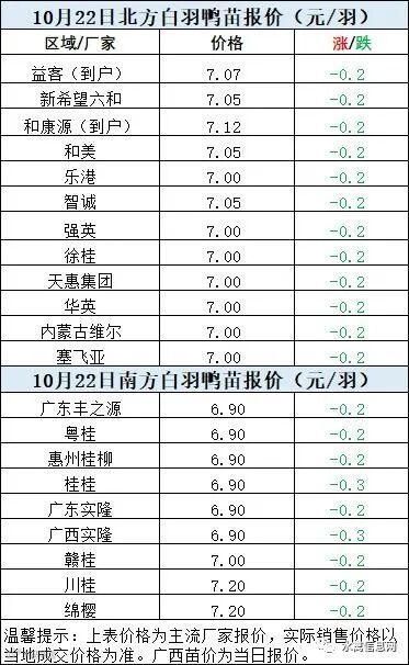 一、10月21日晚至10月22日 白羽肉鸭报价;