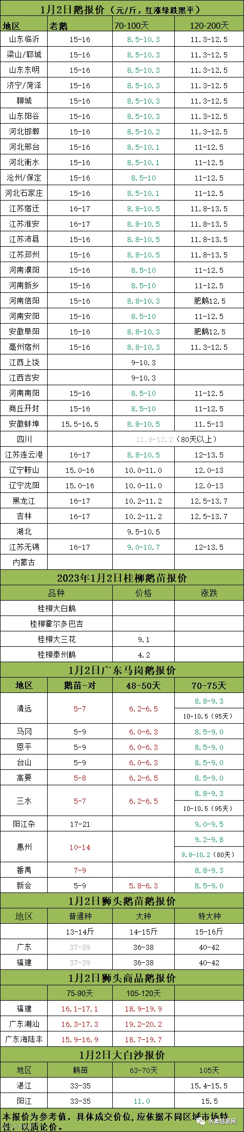 2023年1月02日鹅种蛋价格(元/枚)部分停报