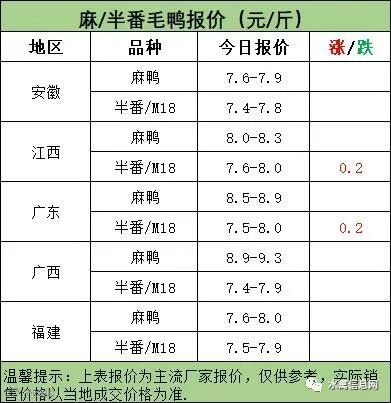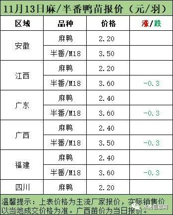 麻鸭苗报价稳定;半番鸭苗报价下滑。