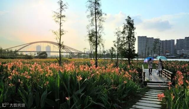 宽阔的东平河畔,佛山最大的城市中心湿地公园——滨江湿地公园呈带状沿河而建,这片由长约8公里的滨河片区改造成的城市公园林荫密布、繁花盛开。碧水长流广场、浪花平台等景观应接不暇,紧邻湿地,未来的佛山CBD——佛山新城栋栋高楼正在崛起。这条佛山新城东平河绿道,目前仍在不断完善,力争打造成绿道的另一个升级版——碧道。