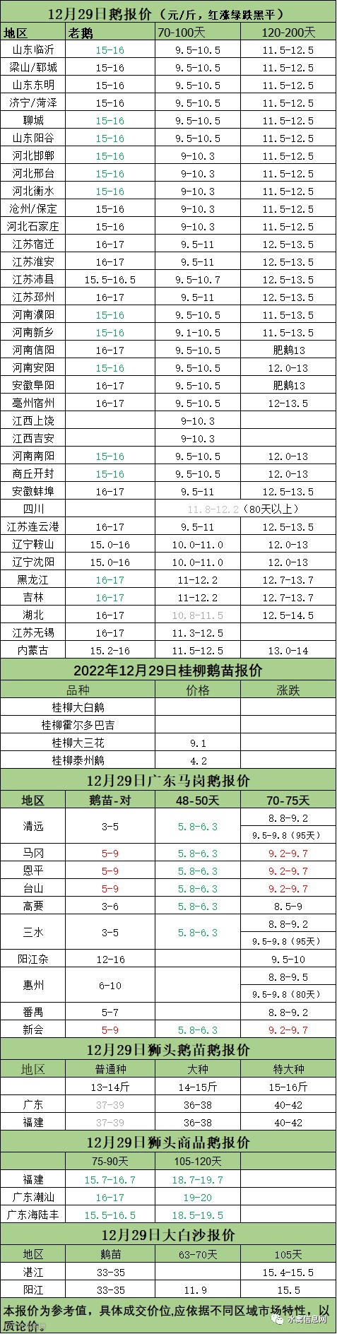 2022年12月29日鹅种蛋价格(元/枚)部分停报