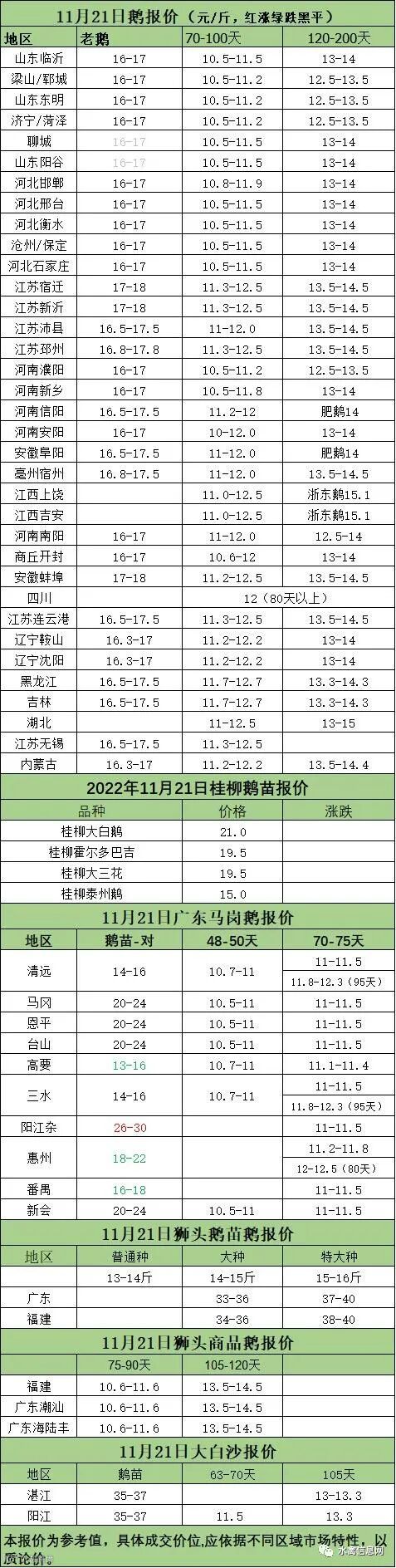2022年11月21日鹅种蛋价格(元/枚)部分停报