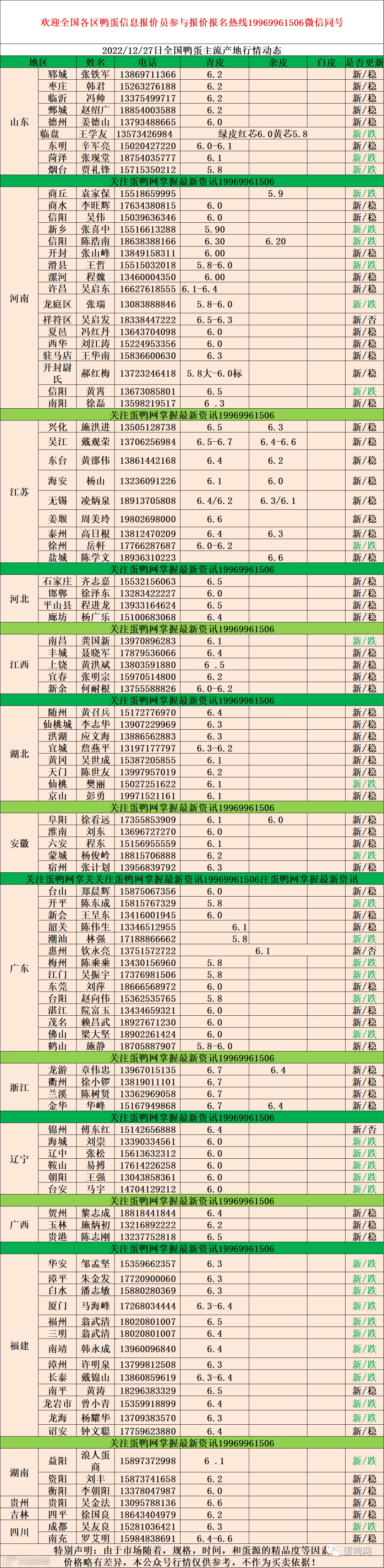 2022年12月27日鸭蛋报价
