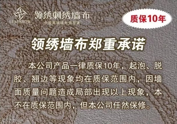 防霉差异普通墙布小厂并没有自己的设备,委托外面加工,一般用的都是喷洒的方式去做防水防霉,刺绣本身是凹凸不平,喷洒式处理的结果是防水防霉不均匀,从而导致墙布容易发霉。领绣采用的是全浸式,360°无死角,防水达到4级(最高5级),防霉达到1级(最高0级)