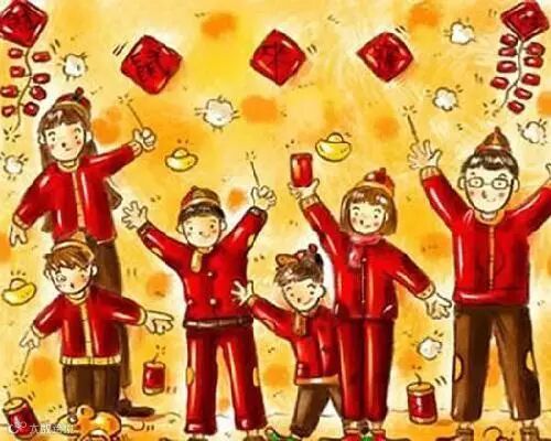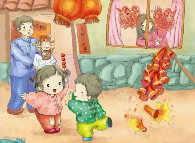 不论男孩女孩都是穿着喜庆的大红色棉袄